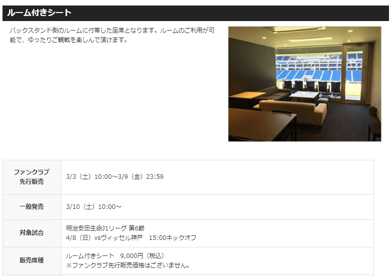 ちょっと映り込みで見にくいですが見取り図です。VC19エリアが今回僕が観戦したVシート60のエリアです。VC20は以下に説明するVシート47のエリアです。VC19の横に小さな部屋が並んでいるのは正真正銘のVIPルームで個室になっています。以下のように企画チケットとして販売される場合もあるようです。