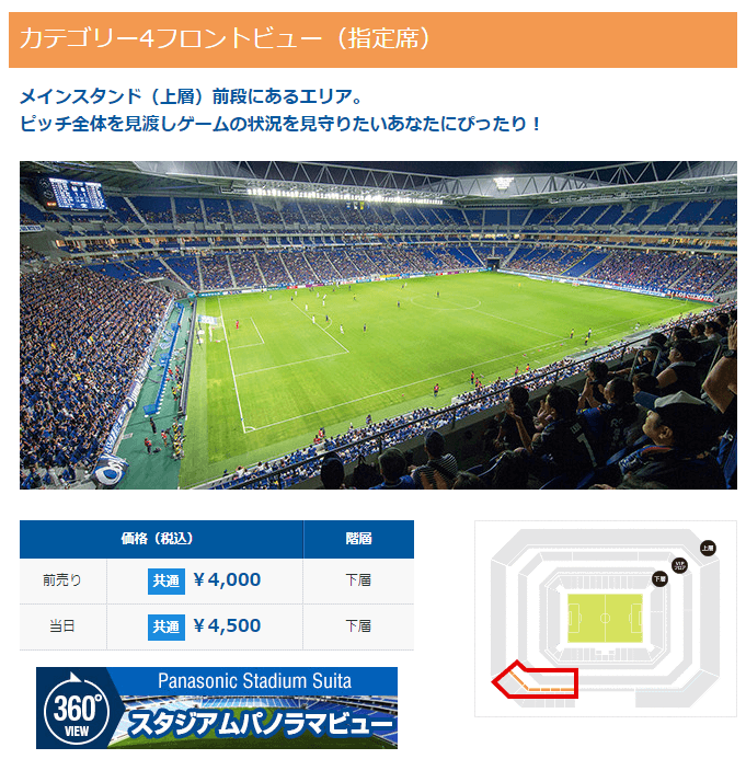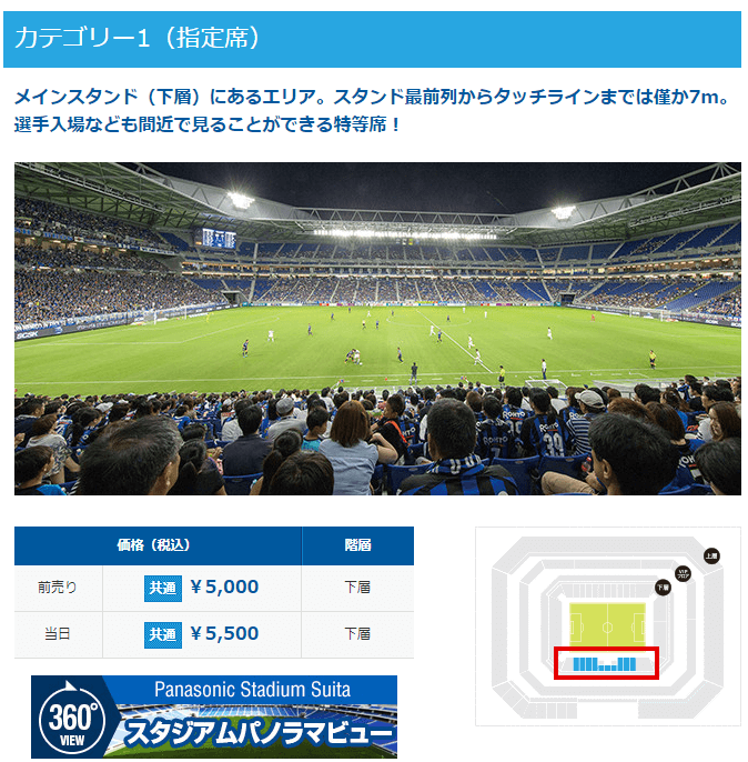 スタンド中層でピッチ全体を見渡すことができ臨場感も味わえます