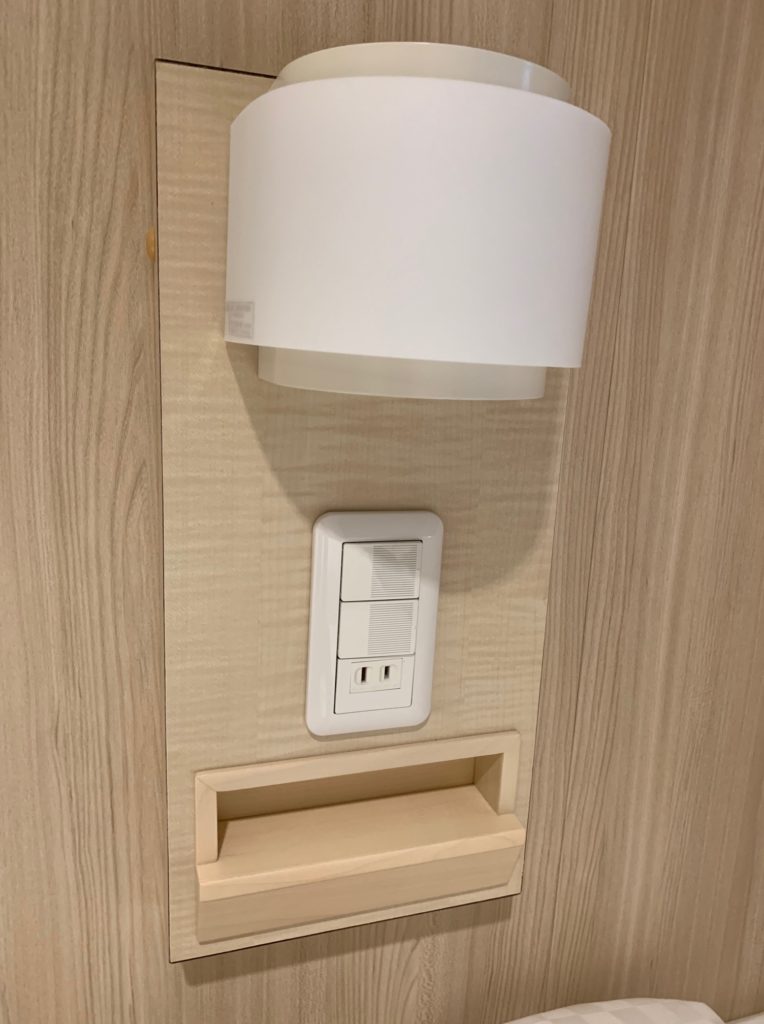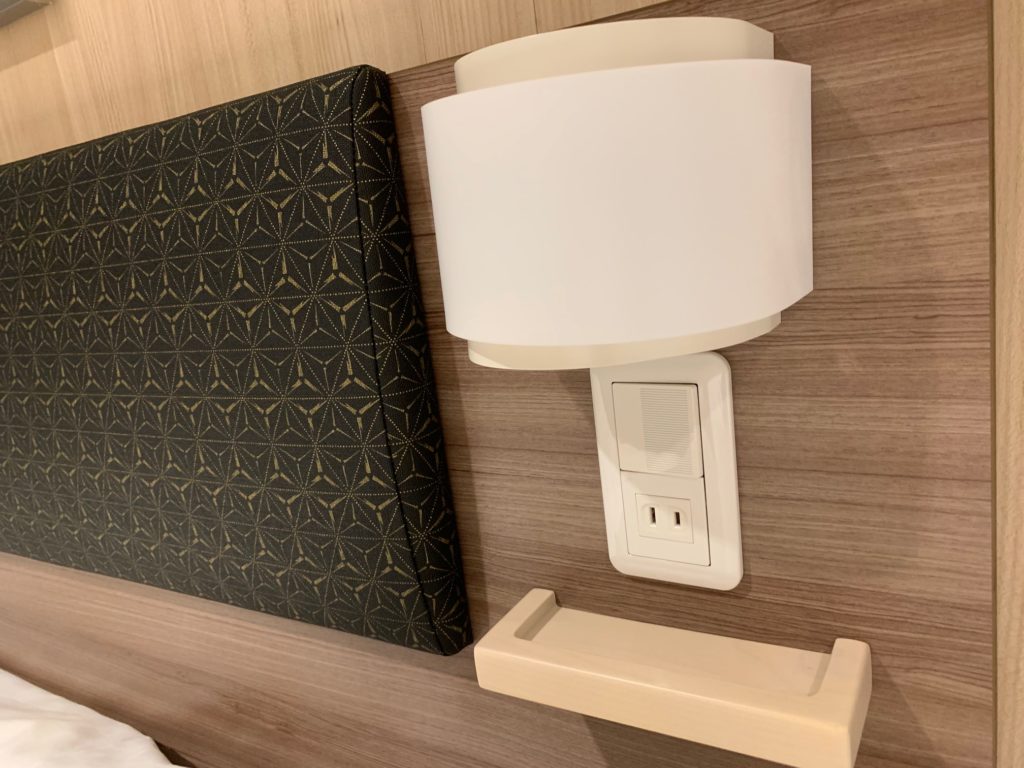 枕元には各々にコンセントとスマホなど小物を置けるスペースがあります