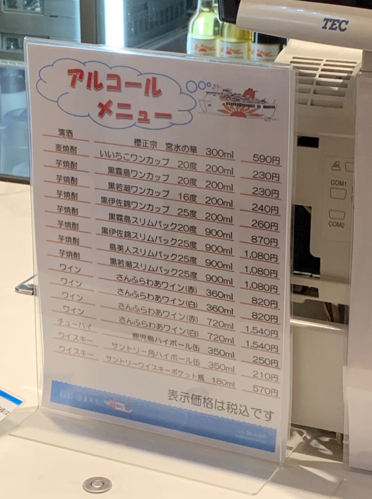 アルコールなどの飲み物もコンビニより少し高い程度の価格で良心的です