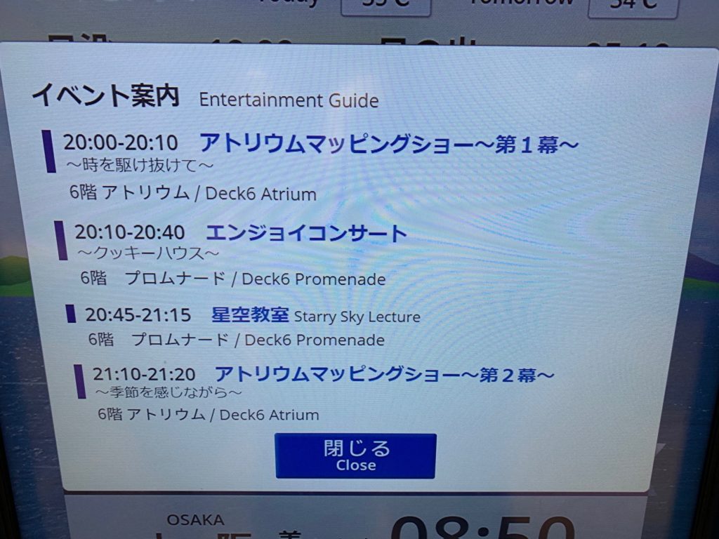 前回さんふらわあさつまに乗った時は平日だったのでイベントがなかったのですが、週末は船内イベントが開催されています。