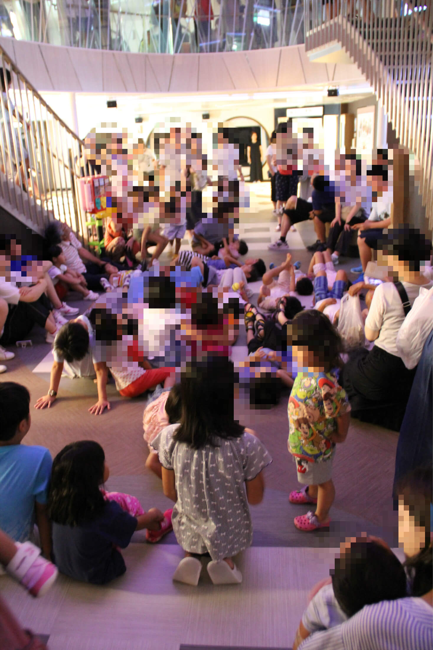 子供たちは床に寝そべって天井に投影されるプロジェクションマッピングを見ていました(笑)