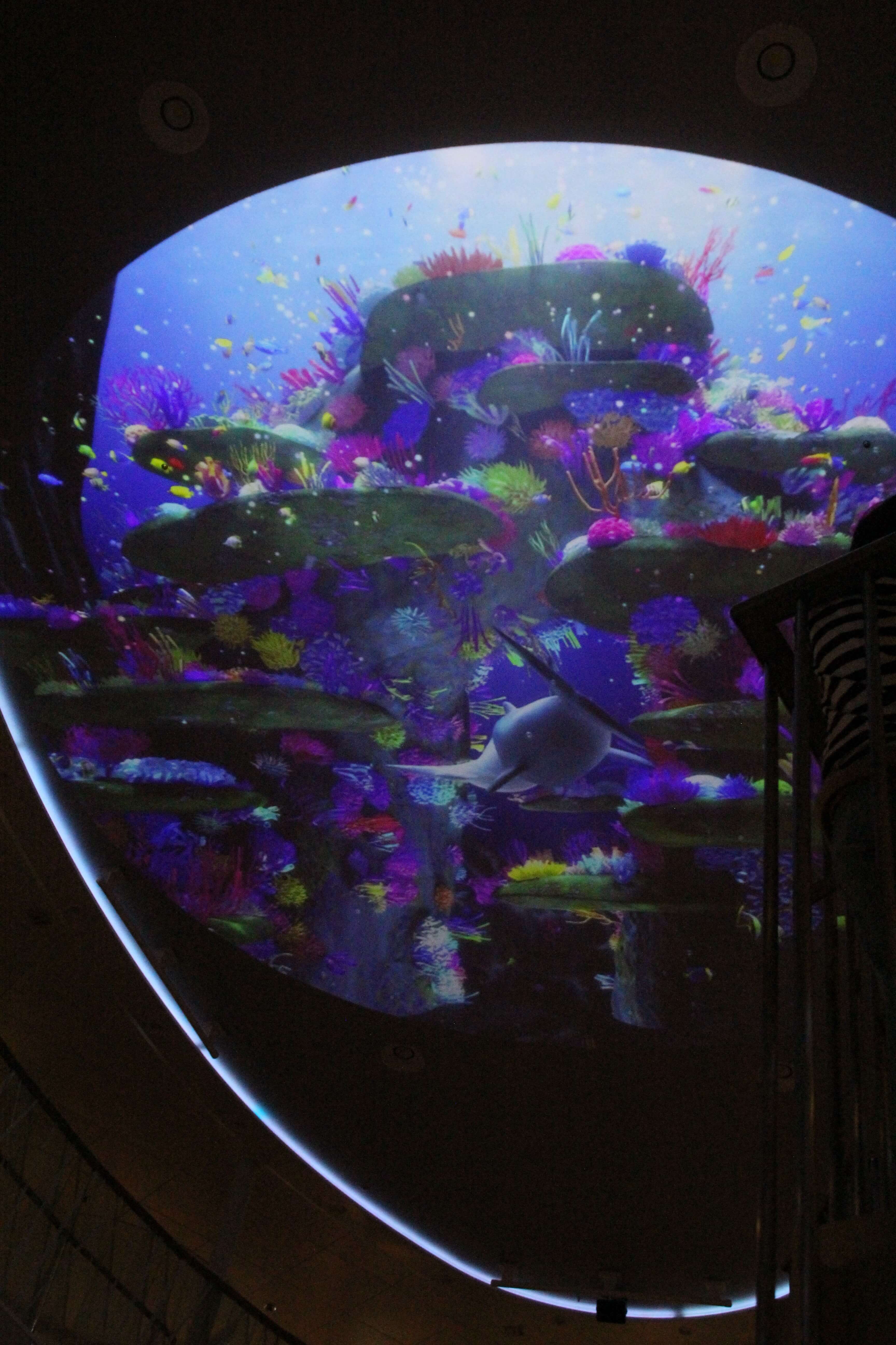 吹き抜けの天井にはプロジェクションマッピングが投影され、幻想的な映像と音で彩られます。