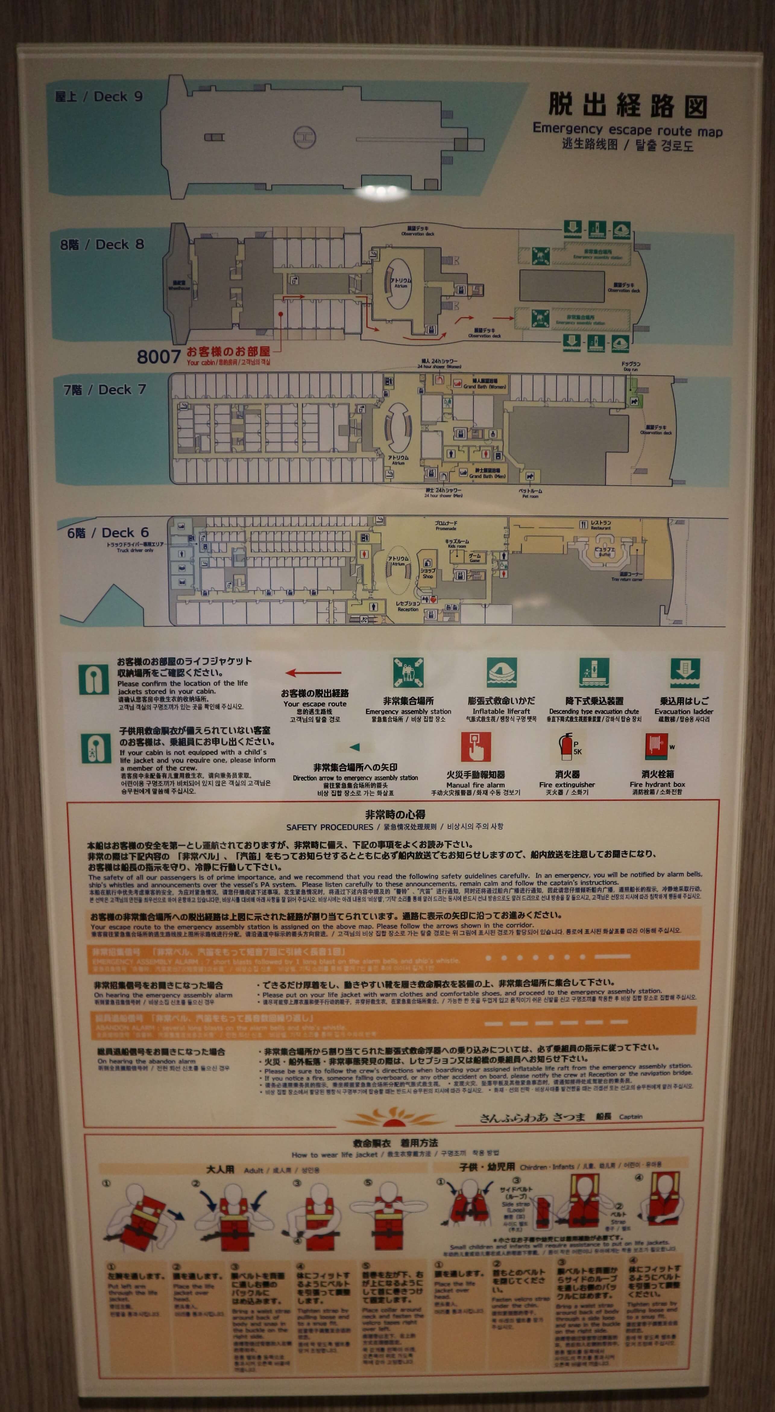 一般客室は全5グレードあります。この日はどの部屋も満室で新船の人気のほどがうかがわれます。