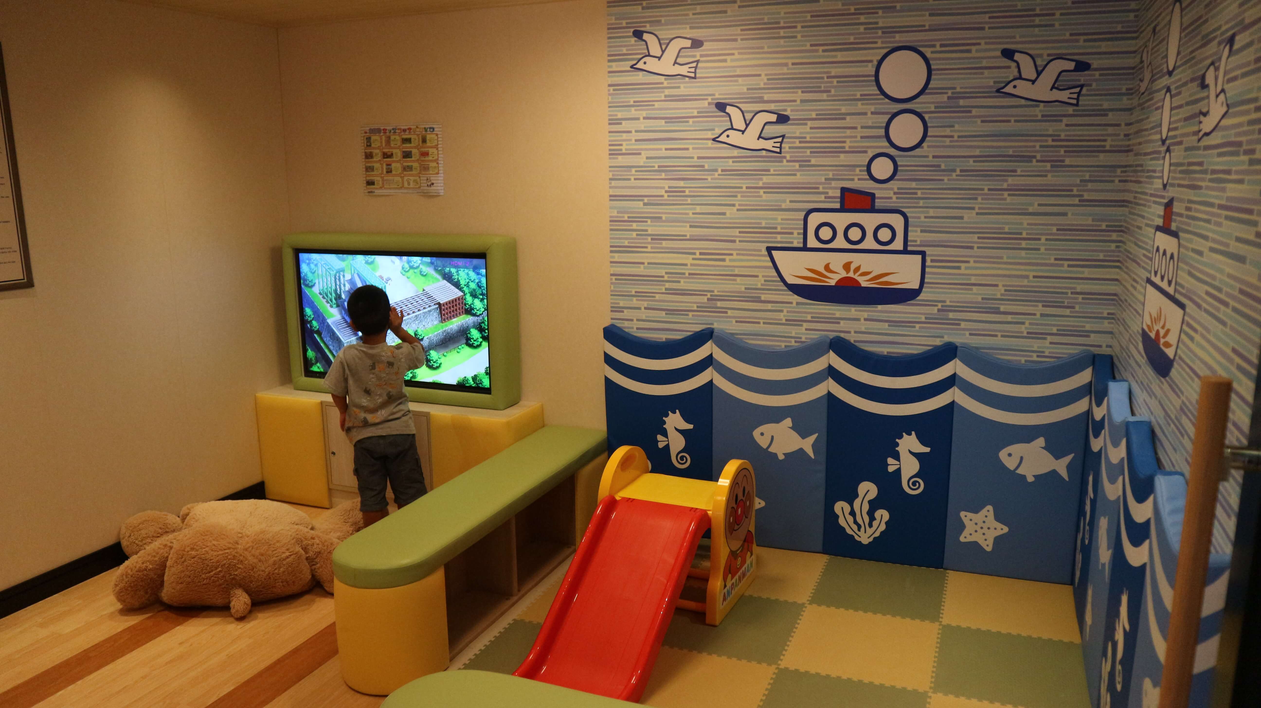 狭いながらも子供が遊べるスペースがあります。この後テレビの前には子供たちがたくさん座っていました。