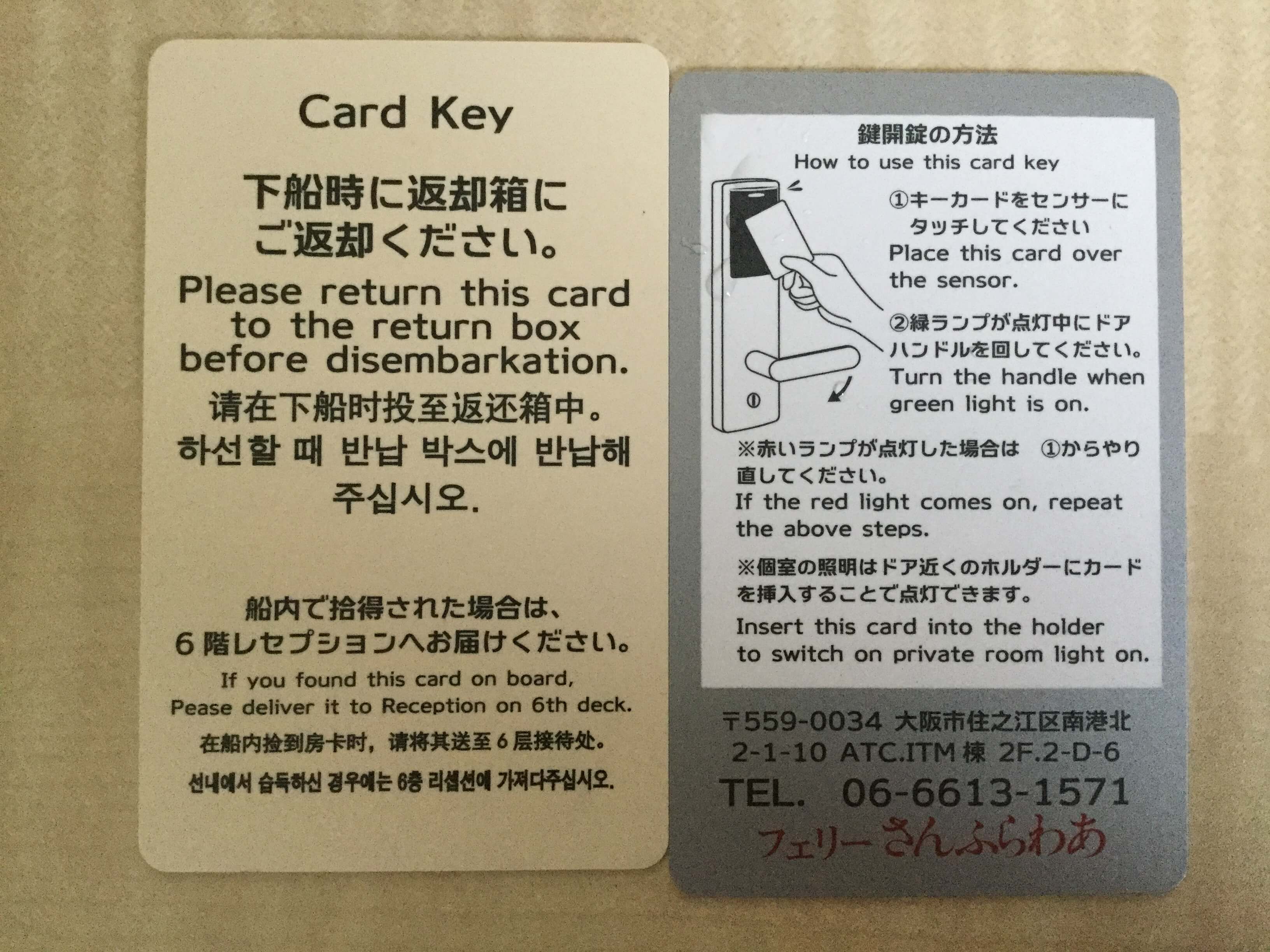 カードキーは新しいさつまでは返却式のカードキーになっています。