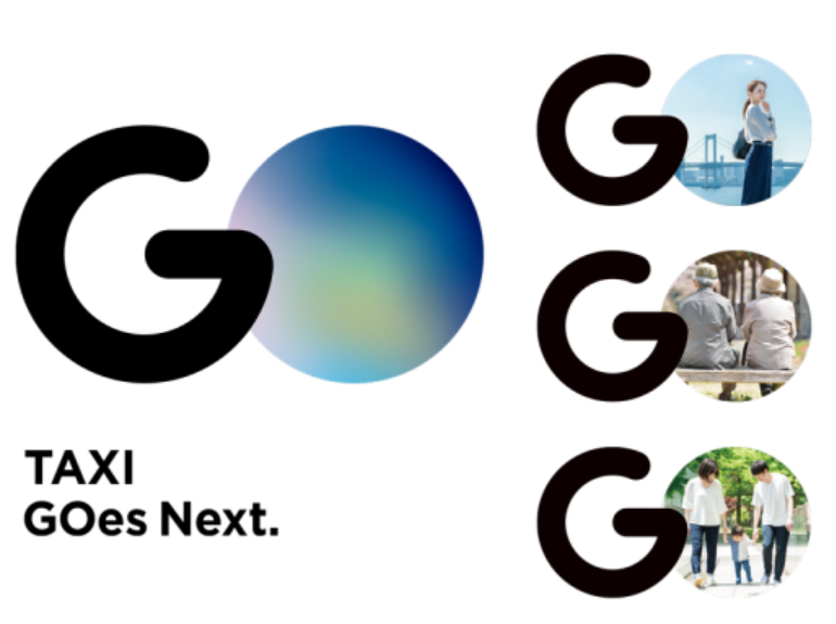 GOという名称には、「行く、進む、向かう」といった従来の意味に加え、「タクシーに未来を乗せて Taxi Goes Next」という、乗客から乗務員まで、サービスを使用する全ての人の笑顔や幸せなど、未来を乗せて走るという想いを込めたとしています。ロゴデザインは地球をモチーフにしたそうです。