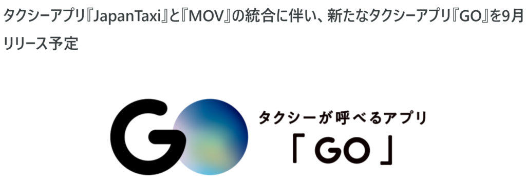 JapanTaxiとMOVが事業統合後、2020年9月にリリースされる新しいタクシー配車アプリ「GO(ゴー)」はどのようなアプリになるのか?どのエリアで利用できるのか?タクシー配車アプリの今後についてまとめました。当ブログではタクシー配車アプリについて今後も注目していきます。