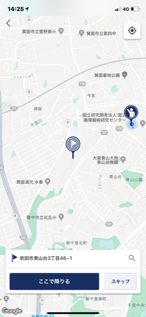 他のタクシー配車アプリではアプリ上にルートが表示されますが、GO(旧MOV)はルートが表示されません。
