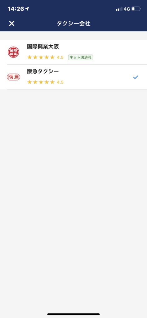 タクシー会社を選べる(迎車料金の有無も分かる)