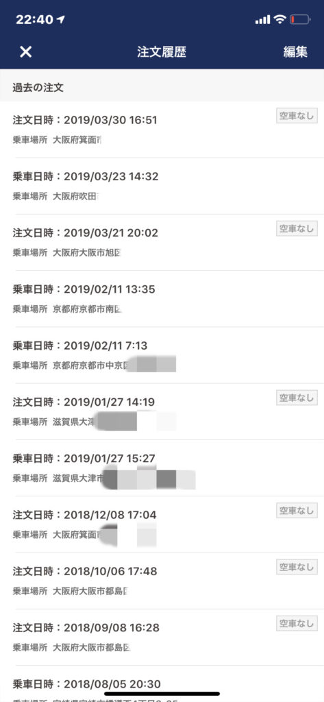 →以前は配車決定の時点でドライバー側から目的地が見えたので近いなど行きたくない配車はキャンセルしていたようですが、現在は乗車するまでドライバー側から目的地が見えなくなったのでキャンセルは減りました!この改善点は評価したいと思います。