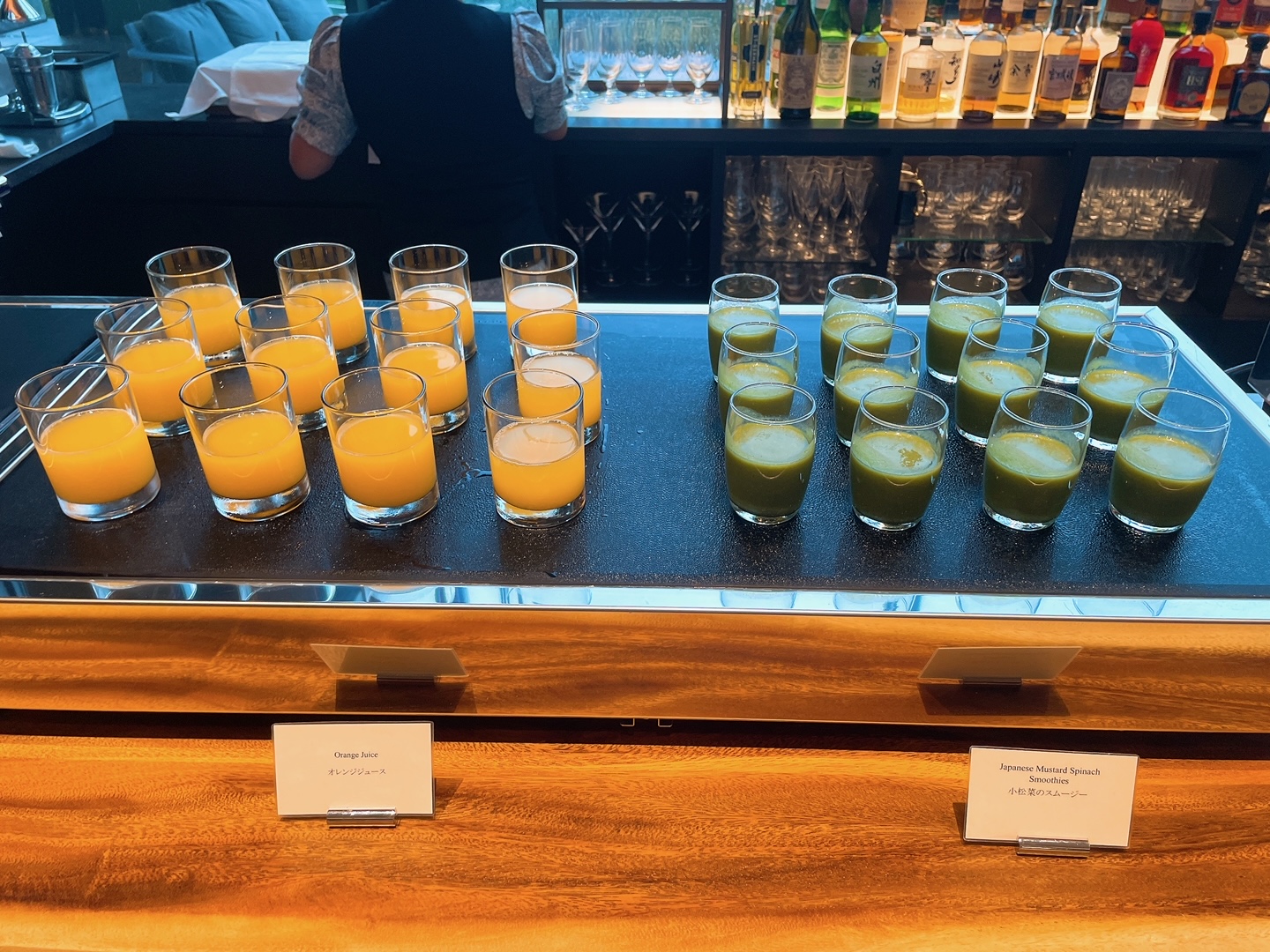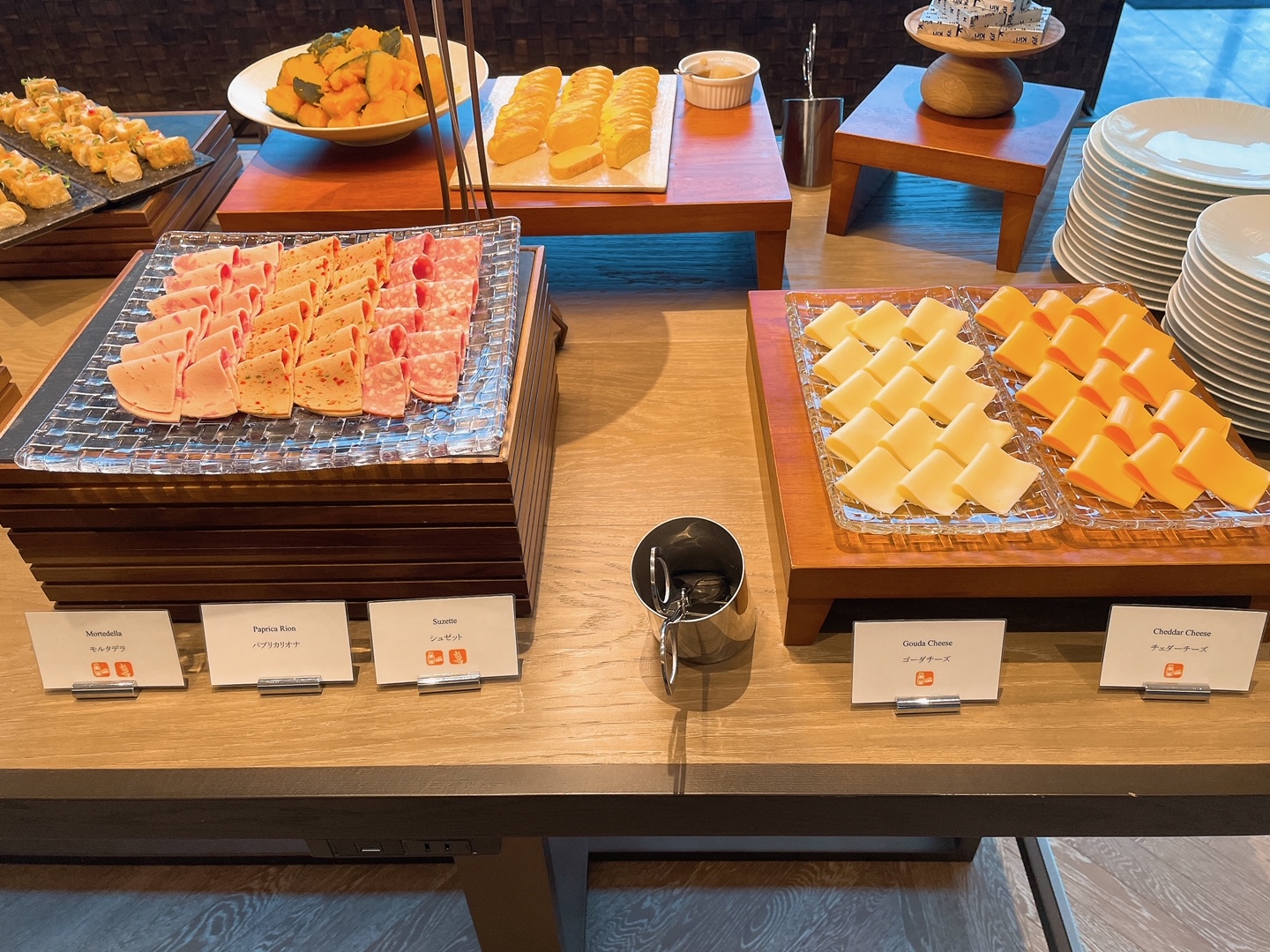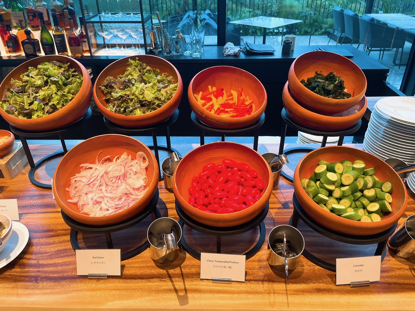 主にコールドミールやサラダ、ジュースなどは入口側のブッフェ台に置かれています