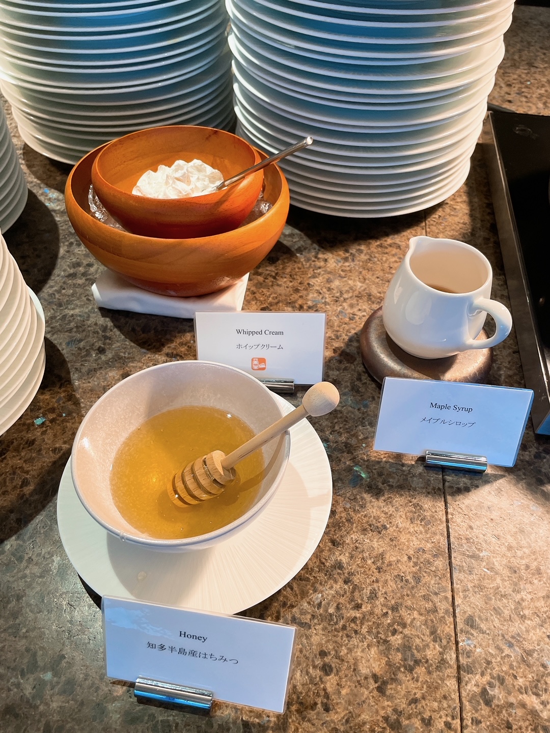ホイップクリーム、メイプルシロップ、知多半島産はちみつ