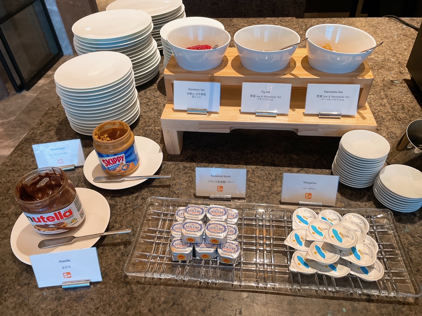 フランス産発酵バター(LESCURE)、マーガリン、ピーナッツバター、ヌテラ