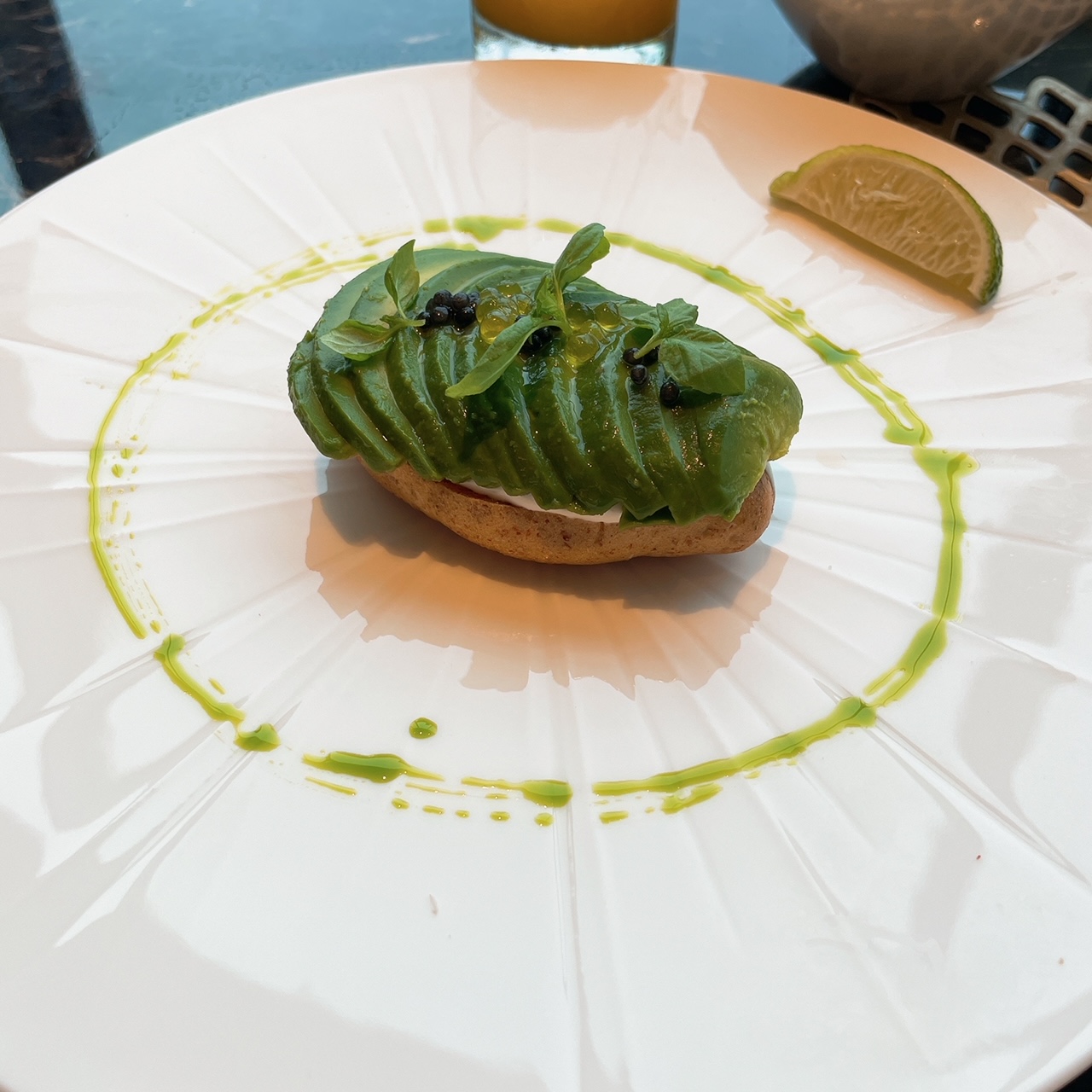 アボカドトースト キャビアとワサビオイルのアクセント