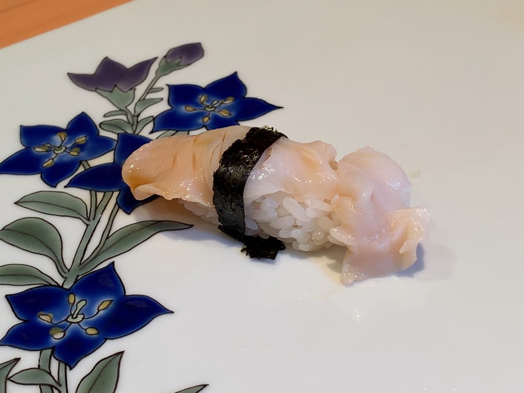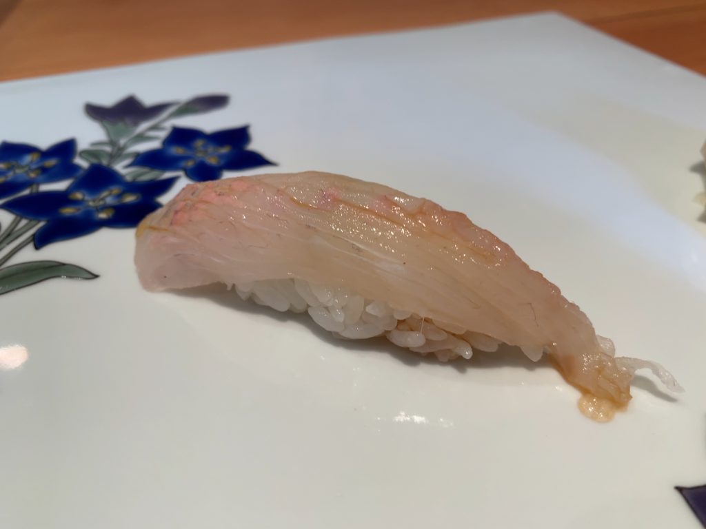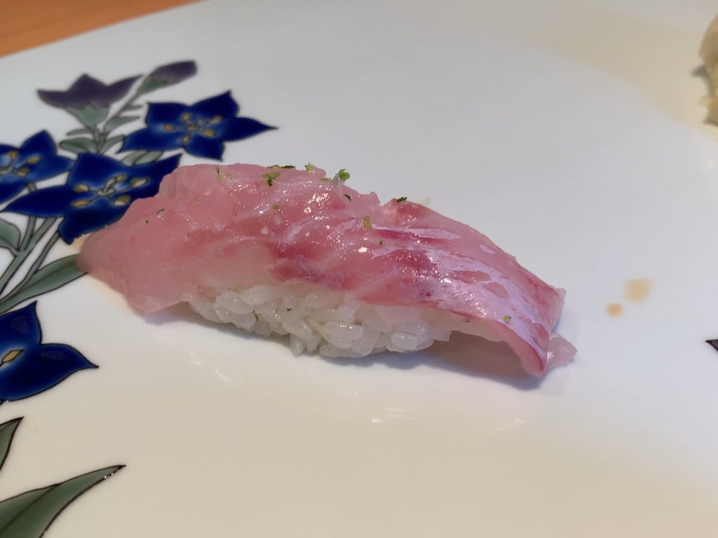 富山らしい握りです。色の割にはあっさりとした味わいで程よい脂が美味しいです。
