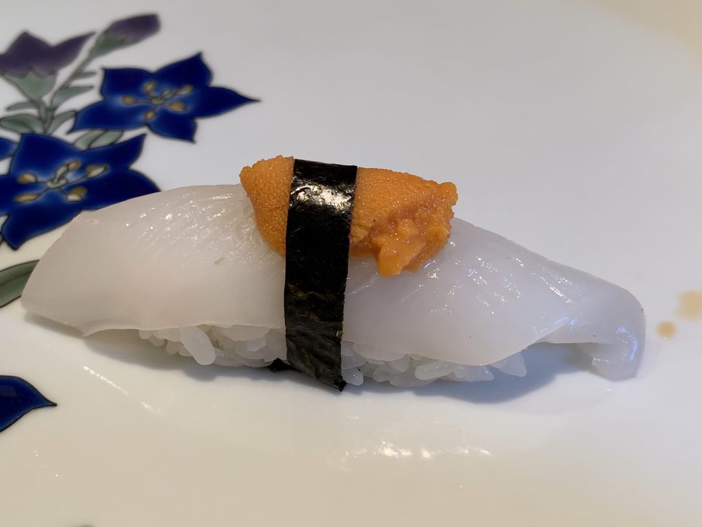 口に入れるとウニがすっと溶けて、噛んでいるうちにイカの甘味がよく感じられるようになり味の変化が楽しめます