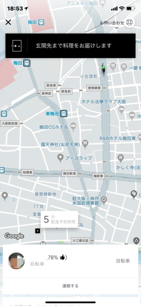 配達パートナーの配達状況がリアルタイムでスマホアプリで確認できるのが興味深いです。