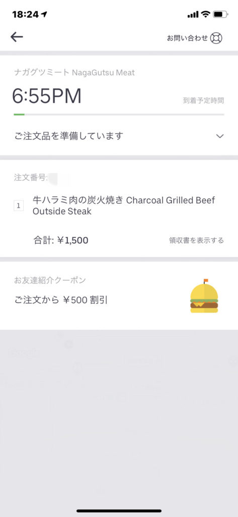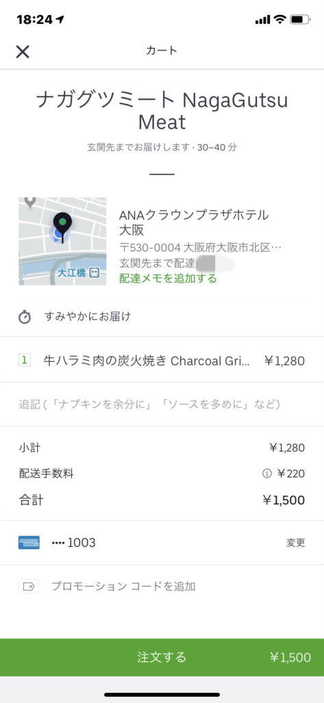 また以下にも説明しますがプロモーションコードを入れることで割引があります。手持ちのプロモーションコードがない方は「eats-f35ky」を入力して下さい!3回目までの注文が750円割引(合計2,250円)のクーポンをゲットできます。