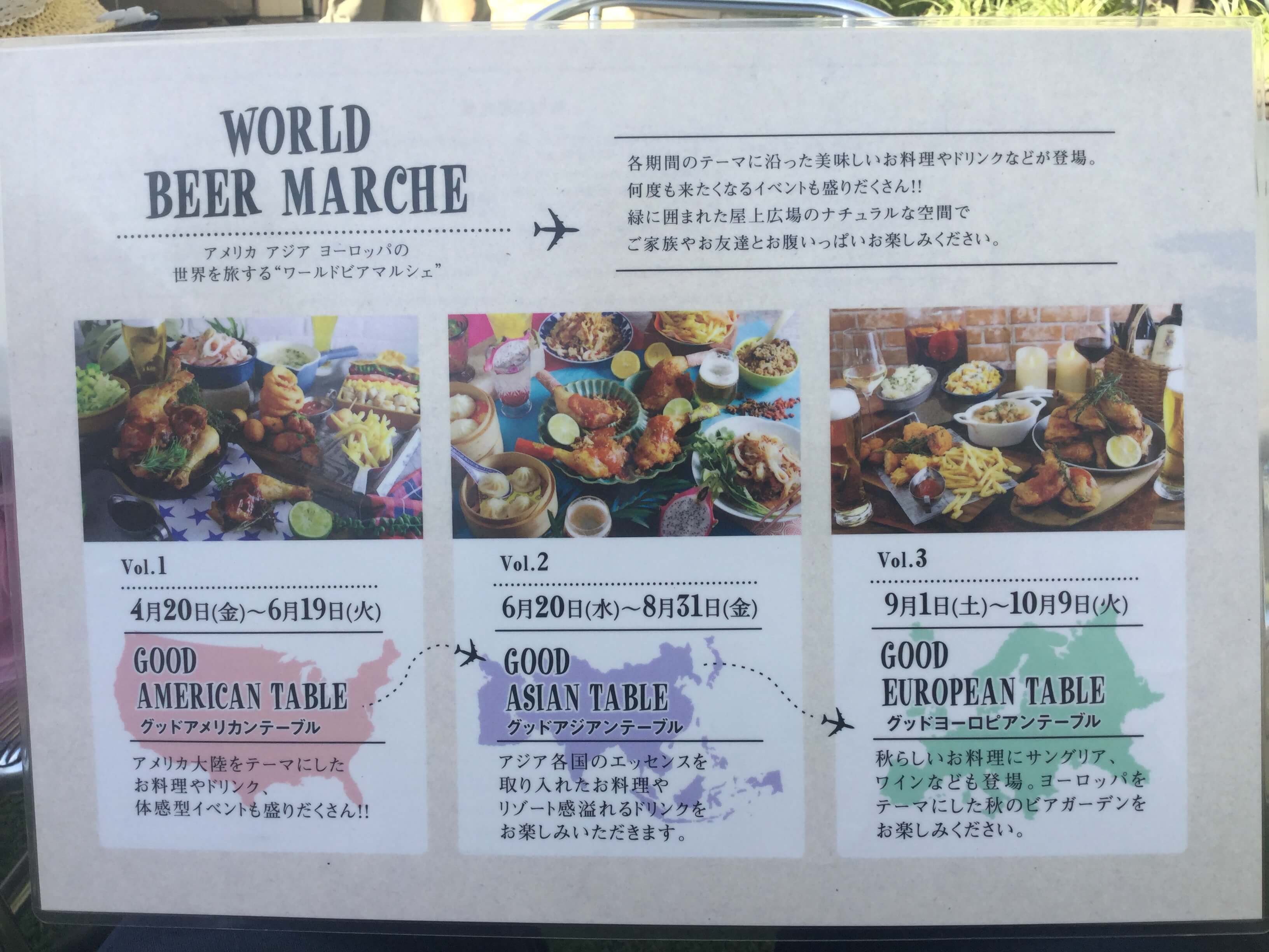 2018年のテーマは期間ごとに変更される世界の料理やドリンクが楽しめる「ワールドビアマルシェ」となっています。