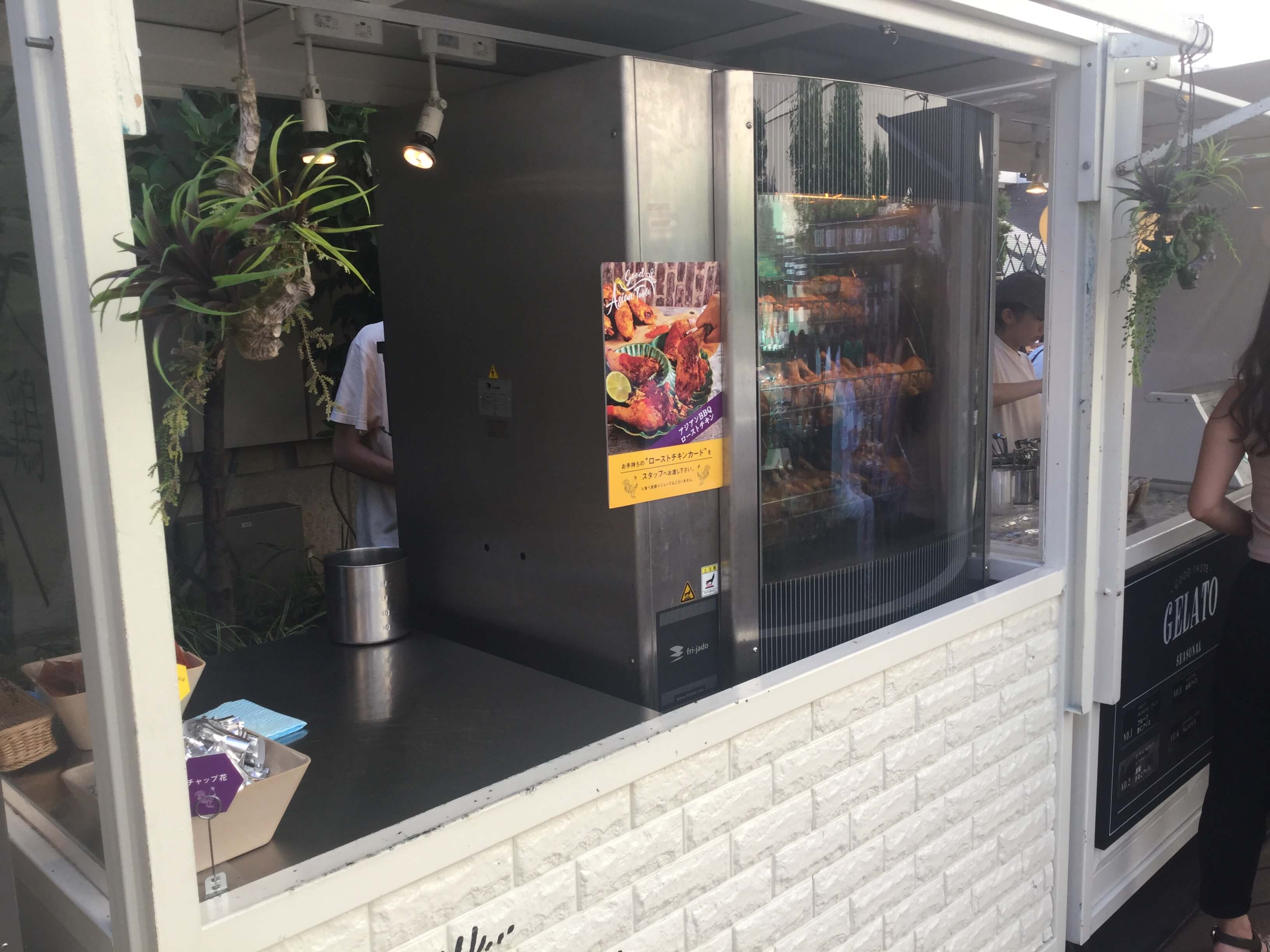 うめはんビアガーデンマルシェ名物のジューシーな骨付き鶏モモ肉のローストです。食べ応えがあります。