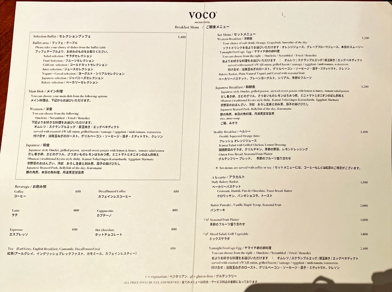 私はIHGダイヤモンド会員であり朝食は無料(IHGワンリワーズ600ポイント、朝食、ドリンク券より選択)でしたが、朝食の価格は3400円となります。