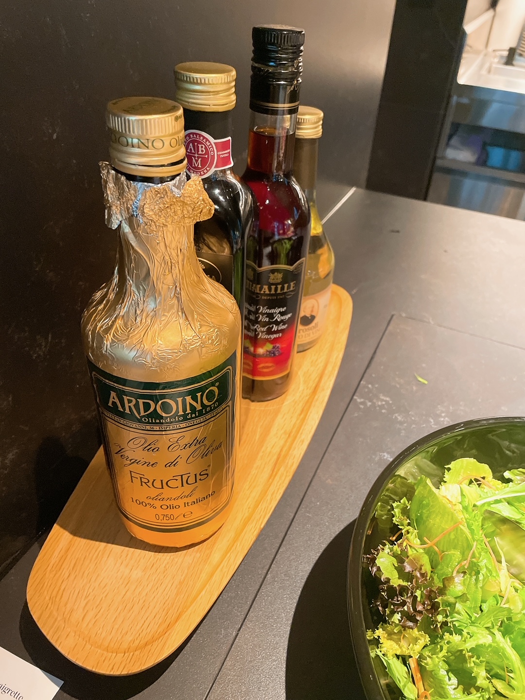 白ワインビネガー、赤ワインビネガー、バルサミコ酢、エキストラバージンオリーブオイル