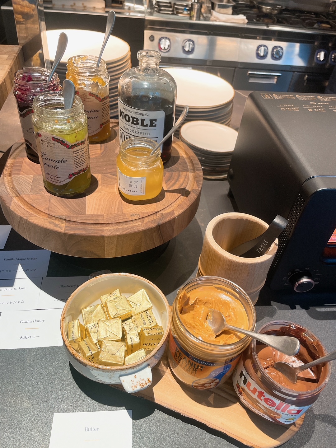 大阪ハニー、マーマレード、ブルーベリージャム、グリーントマトジャム、バニラメープルシロップ