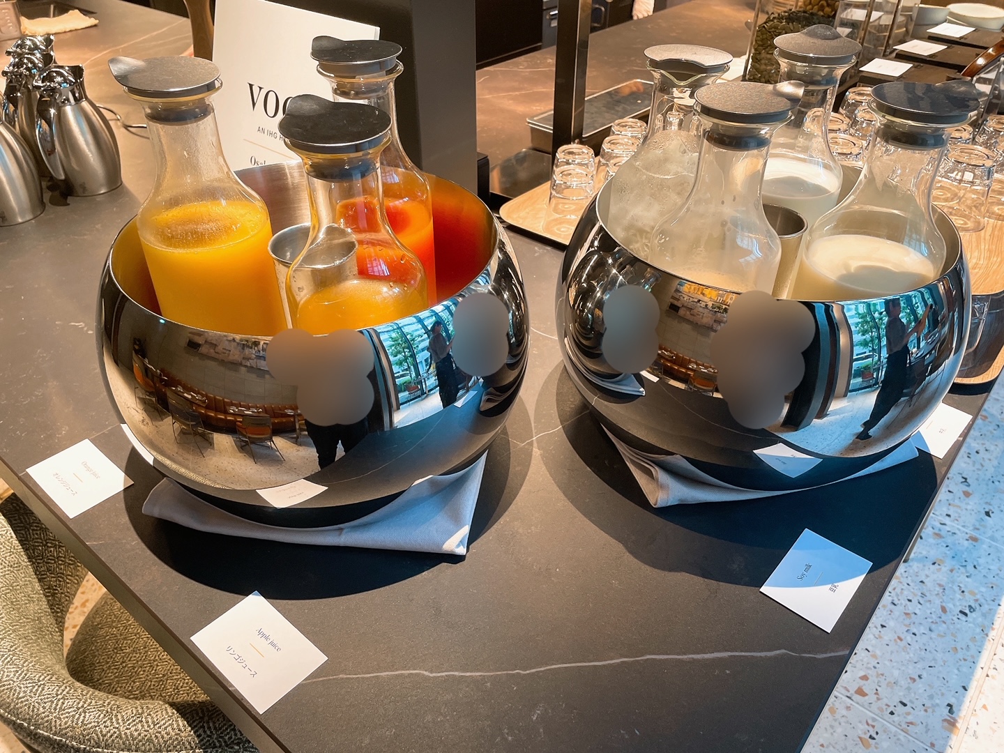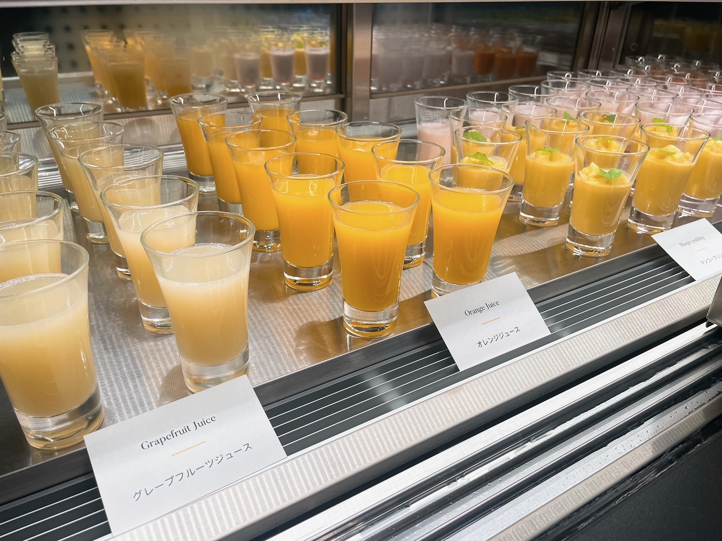 グレープフルーツジュース、オレンジジュース、マンゴープリン