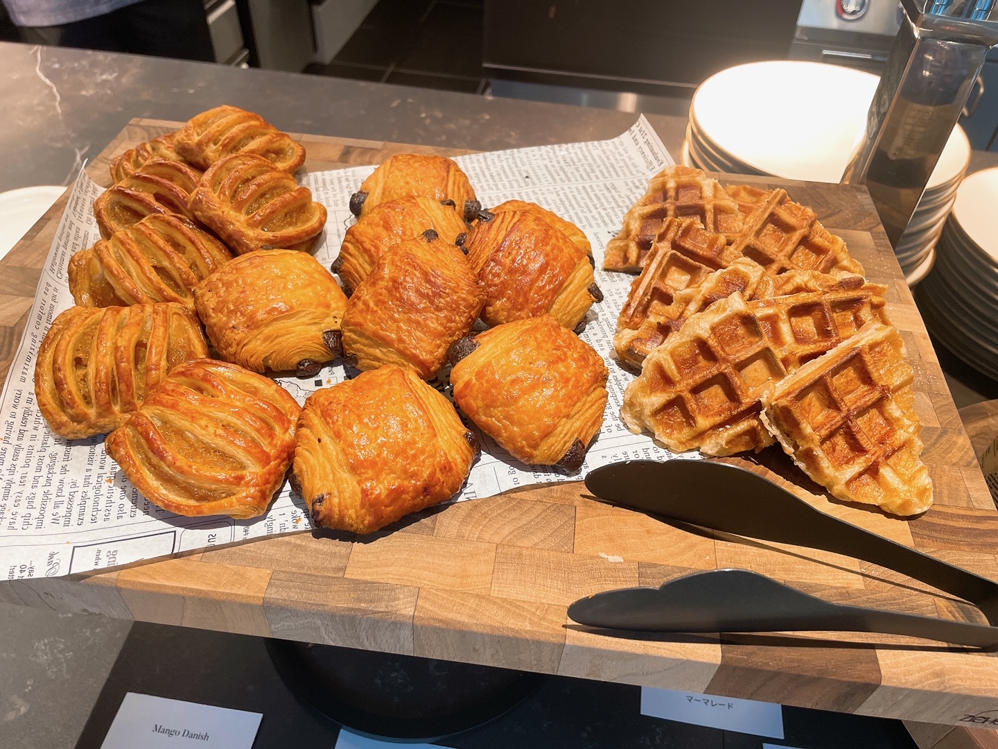 マンゴーデニッシュ、パン・オ・ショコラ、自家製クロッフル