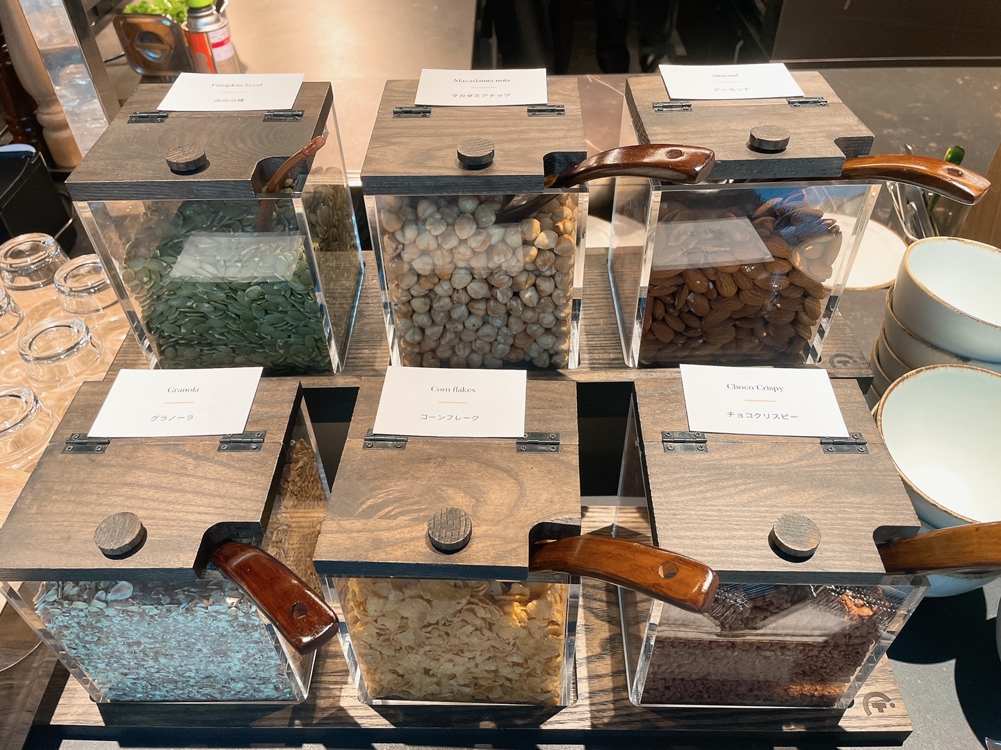 グラノーラ、コーンフレーク、チョコクリスピー、南瓜の種、マカデミアナッツ、アーモンド