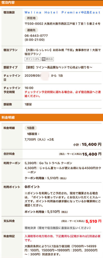「大阪の人・関西の人いらっしゃい!」キャンペーンとは、関西2府4県在住の対象者が大阪府内で7000円/泊以上の指定プランで宿泊する場合、1人1泊につき2,500円のキャッシュレスポイント(大阪いらっしゃいポイント)が還元されるというキャンペーンです。2020年6月19日から行われており、7月31日で終了予定でしたが、2020年9月現在延長され、まだキャンペーンは続いています。