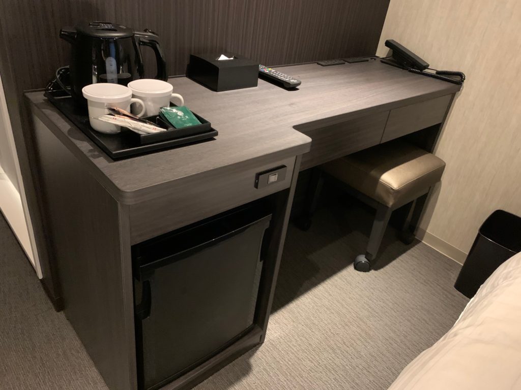 デスクというかちょっとした作業スペースはあります。椅子が背もたれがなく長時間作業すると疲れそうですが…
