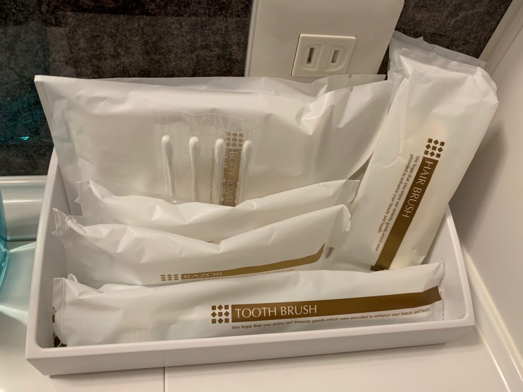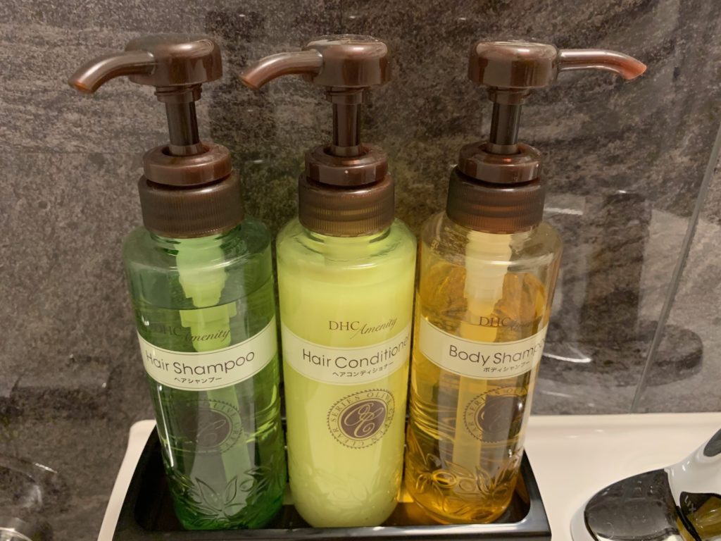 シャンプー、コンディショナー、ボディソープはDHCのものでした。