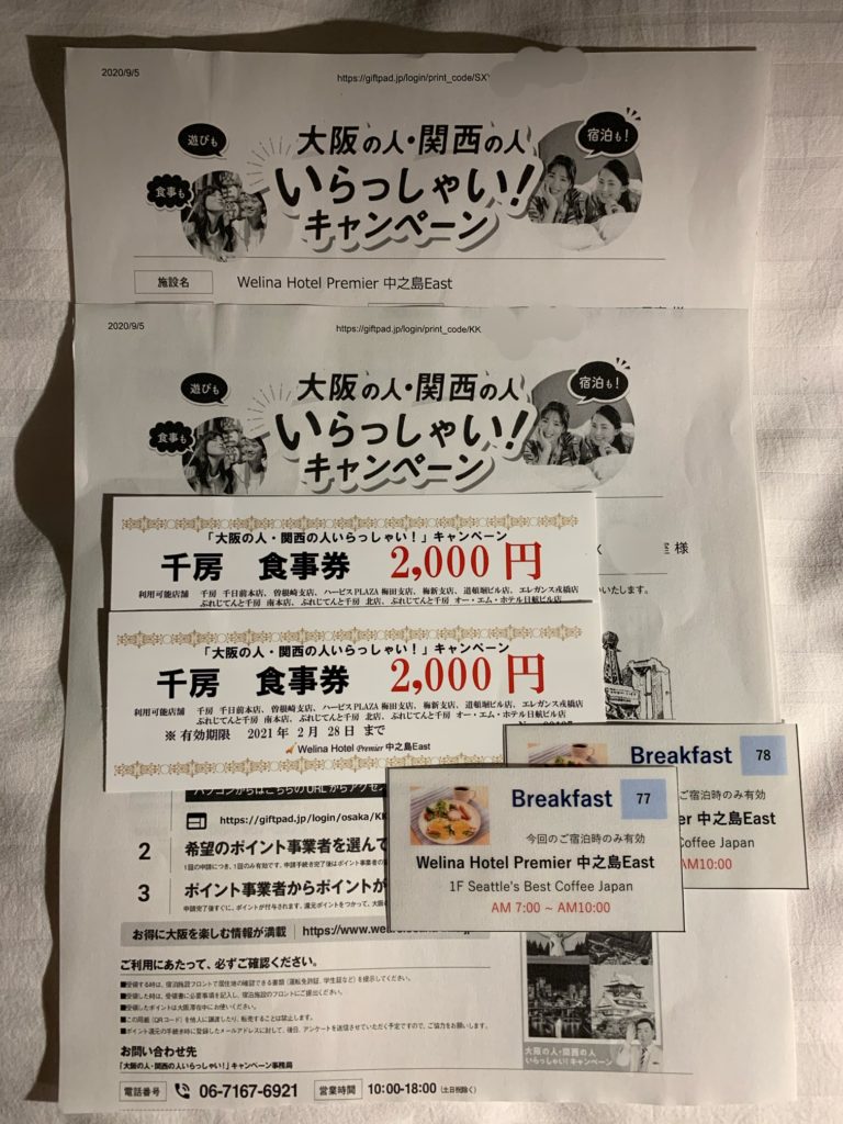 Welina Hotel Premier中之島Eastの大阪いらっしゃいキャンペーンのプランがGo Toトラベルキャンペーンと併用すると大変お得でしたのでご紹介しました。記事中でもご紹介しましたがじゃらんなど旅行サイトのクーポンを利用すればさらにお得に宿泊できますので時期を狙って予約してみて下さい。