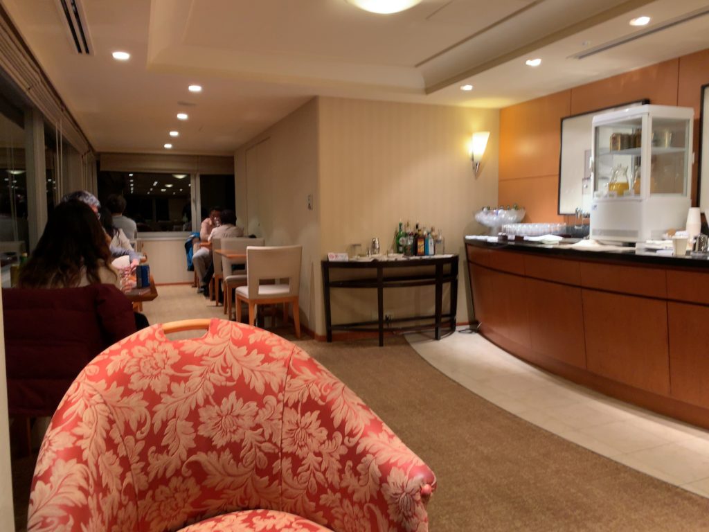 10階ラウンジはエレベーターを降りるとエレベーターホールの延長のようなスペースです。扉もなく戸惑います(笑)そして、ラウンジ内部はそれほど広くありません。ちょうど真ん中の席に座りましたのでこの倍程度の広さと席数になります。